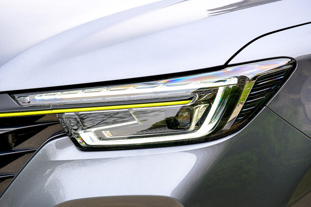 左右两边的矩阵大灯加入由荧黄线条,横贯中网,让中网与前大灯有了一定的联系,更有了横向视觉拓宽的实际效果。总而言之,新车的整个前脸设计更加主次分明。