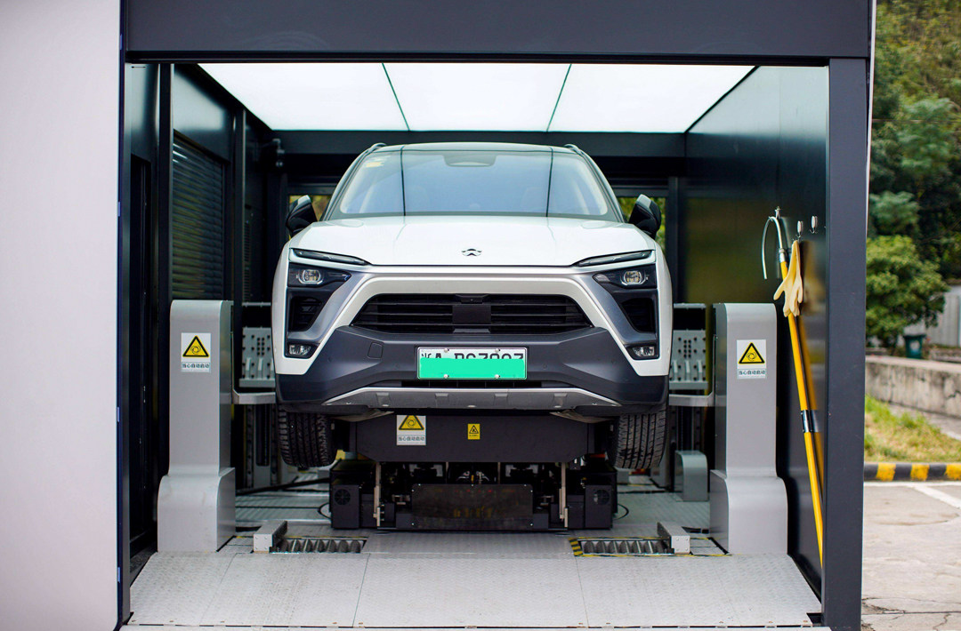 类似的“换电模式车型”可以通过车企自建的换电站实现换电操作,用户只需要把车辆停在蔚来换电站外,车辆会自动倒入换电工位,换电站可以在3分钟内自动完成电池更换工作。