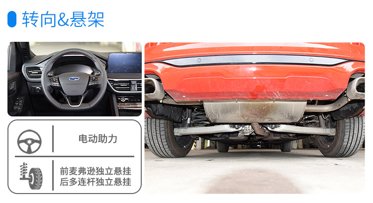 锐际ST-LINE版本拥有独特的熏黑式蜂窝状前进气格栅造型,福特的LOGO也被上移至车头盖处。锐际ST-LINE的另一个特别之处就在于19英寸的轮毂,比其它版本18英寸的轮毂大了一寸,不过轮胎规格是225/55 R19,轮胎型号为倍耐力的SCORPION VERDE系列,是一款偏舒适的轮胎。这是比较奇怪的一个点,因为福克斯ST-LINE上采用的是米其林PS4S运动型轮胎。