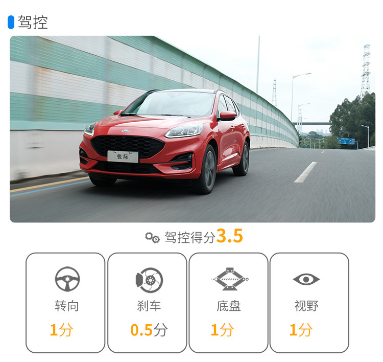 考虑到锐际是一款运动型SUV,它的隔音水准可以说相当不错,跟一些家用SUV相比,锐际并没有被拉开太大差距。