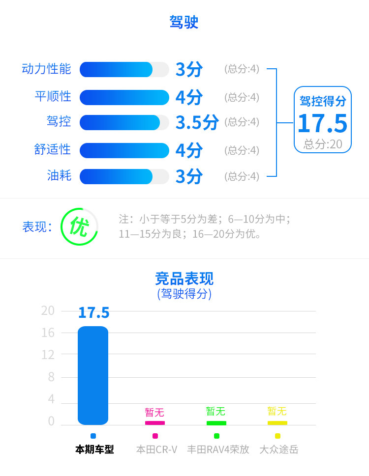 小结:锐际的配置可谓是十分丰富,没有什么短板。有非常良好的舒适性配置,完全不像一台运动型SUV。锐际的车机做得十分出色,功能丰富,触摸屏的反应非常灵敏,UI设计符合现代的审美。驾驶辅助方面也没有什么短板,L2级自动驾驶辅助配置标配率达到60%。