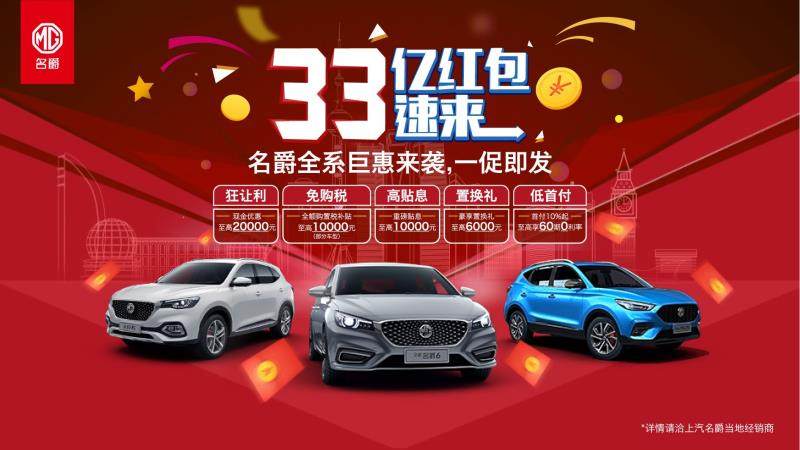 33亿红包,名爵6、名爵ZS、名爵HS全系优惠购