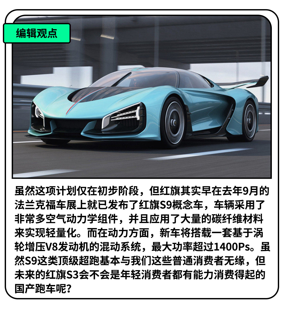 日前,长春市政府、中国一汽、美国丝尔科公司通过视频连线方式签署了红旗S系项目合作意向书,宣布将成立合资公司,制造首款红旗跑车车型。而根据已公布的规划,红旗S制造交付中心将落户长春,分三期建设,逐步实现红旗S9、S7跑车的组装与交付,后期还将追加S5、S3等车型。