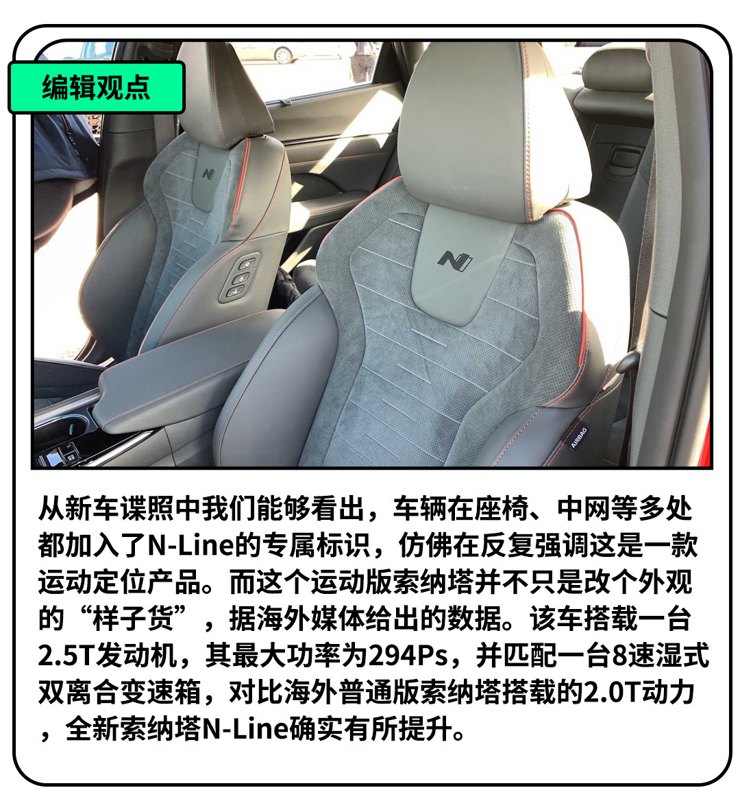 据外媒报道,全新索纳塔N-Line有望于今年5月份正式亮相,并且官方还发布了车辆的实车谍照,新车基于全新一代(第十代)现代索纳塔普通版车型打造,并且增加了一些运动套件以及N-Line专属标识。海外上市时间初步定在9月份。