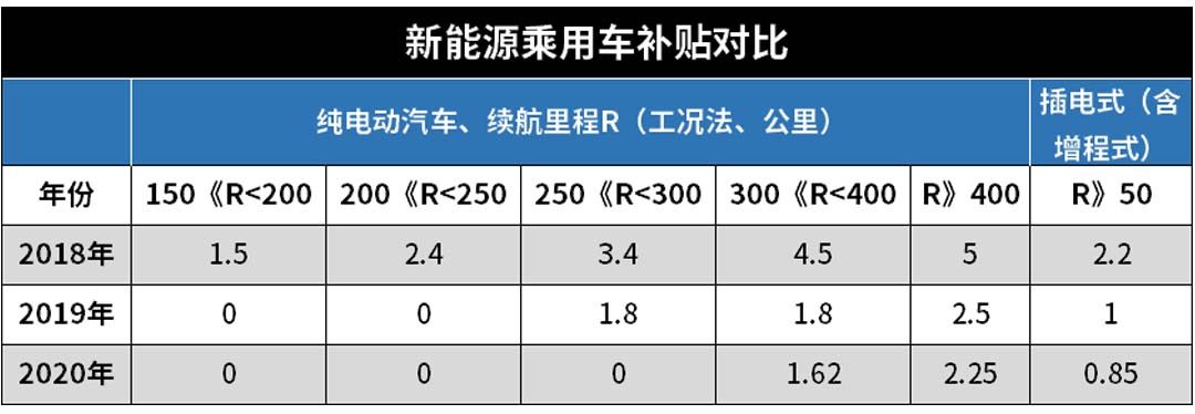 相比2019年,2020年的补贴门槛进一步升高,由250公里上升到300公里;补贴额度进一步缩水,从纯电动车来看,续航里程300-400公里可获得1.62万的补贴,400公里以上可获得2.25万元补贴,均比2019年下降10%;插电混续航里程50公里以上的可以获得0.85万补贴,比2019年下降15%。