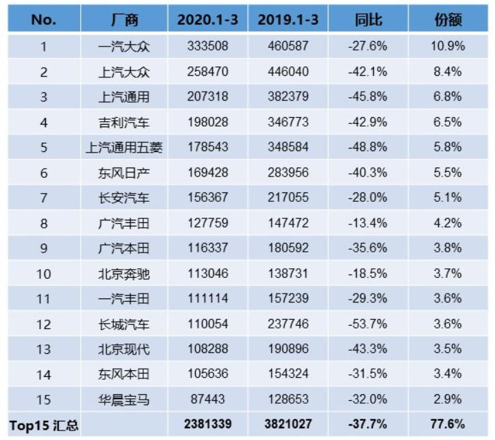 中汽协销量数据显示:今年一季度销量367.2万辆,同比下跌42.4%。换句话来讲:买车的人几乎少了一半。