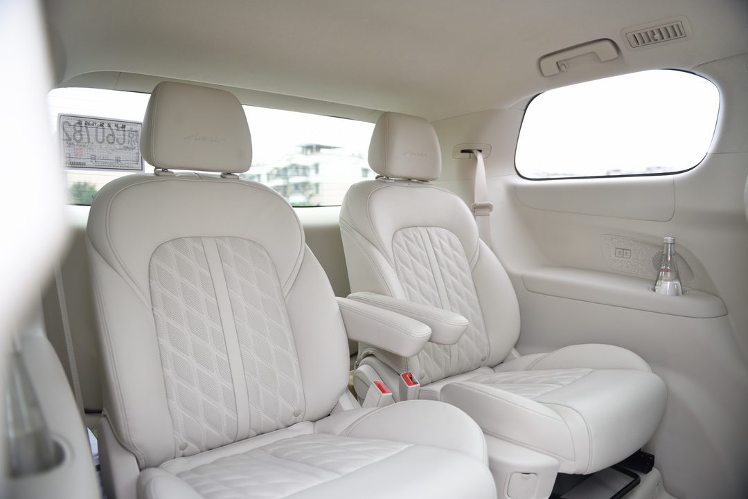 除此之外,第二排中间拥有170mm的宽敞通道,方便第三排乘客上下车。二、三排座椅都为独立设计,有着宽裕的前后调节空间和座椅靠背调节空间,每位乘客都能享受到舒适的半躺姿势和平等的乘坐空间。且均配有通风/加热,USB充电口,杯架等功能。