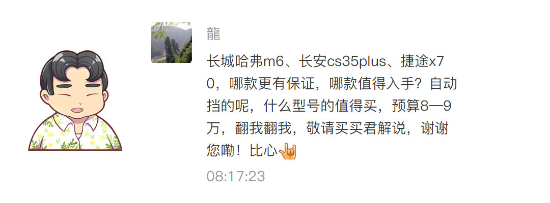 哈弗M6、长安CS35 PLUS和捷途X70,个人比较推荐你在前两者之间做出选择。