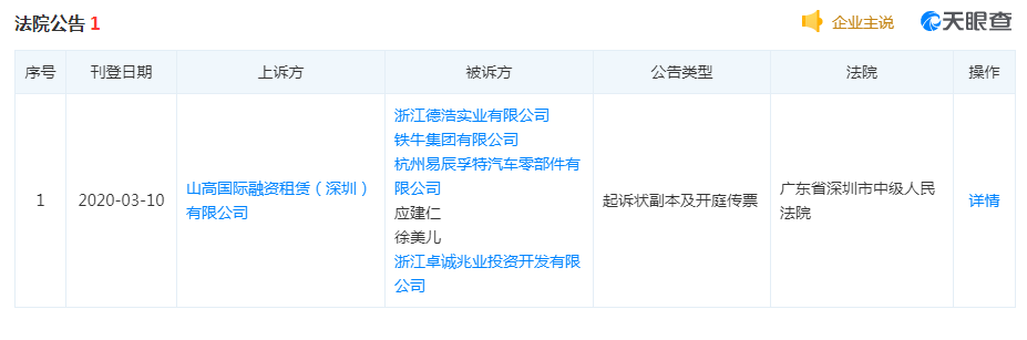 再者母公司铁牛集团也是自身难保,据资料显示铁牛集团总资产为479.55亿元,总负债为313.84亿元,资产负债率为65.44%,其所持子公司股份大比例被质押,房地产子公司卓诚兆业和黄山金马集团的股份已经全部被质押,所持众泰汽车100%股权也被司法冻结。