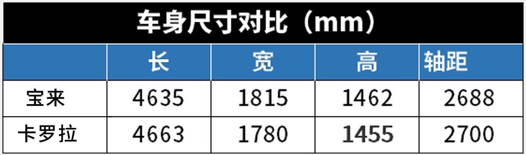 从车身尺寸来看,卡罗拉在车身长度和轴距上有优势,而宝来车身更宽,所以视觉上,卡罗拉更显修长,而宝来则更显沉稳。