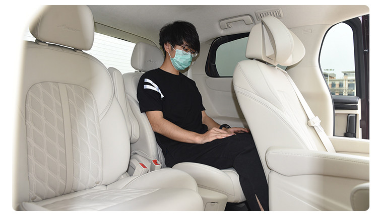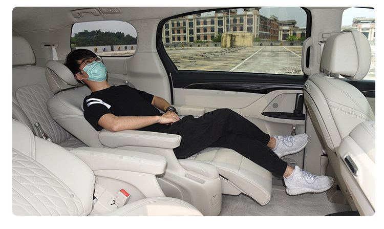 GL8 Avenir的第二排有超长的滑轨,滑动距离超过半米,坐垫到推托末端长度达82厘米,放下靠背可以非常舒适地躺下,空间表现无需多言。