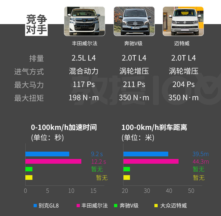 作为一款MPV,它本不需要出色的加速性能表现,制动性能则需要好一点,但GL8 Avenir的表现有点出乎教授的意料,加速时间跑进10秒内,个人认为是中上水平了;另外制动表现也颇为亮眼,40米不到,比竞品的威尔法还要好,作为一款2吨重、车长超5.2米的车来说,完全可以评价为优秀。