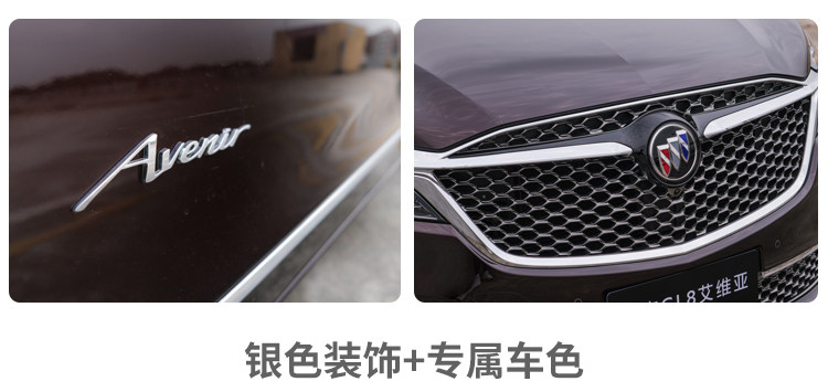 别克GL8 Avenir在视觉上亮点颇多,车色是专属的梅洛酒红色,并且进气格栅采用艾维亚专属的网状镀铬设计,颇有尊贵气质,另外Avenir版本的车身采用比普通版本更多的镀铬饰条,凸显豪华感。