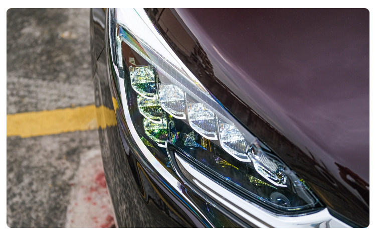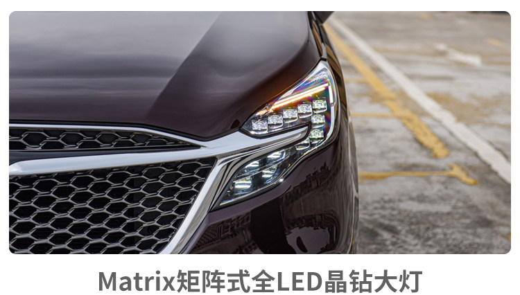 改款车型最大的改变在于换了这个LED晶钻大灯,一共有8颗钻石晶体,像钻石一般璀璨,百看不腻,豪华尊贵的气场相当强烈。