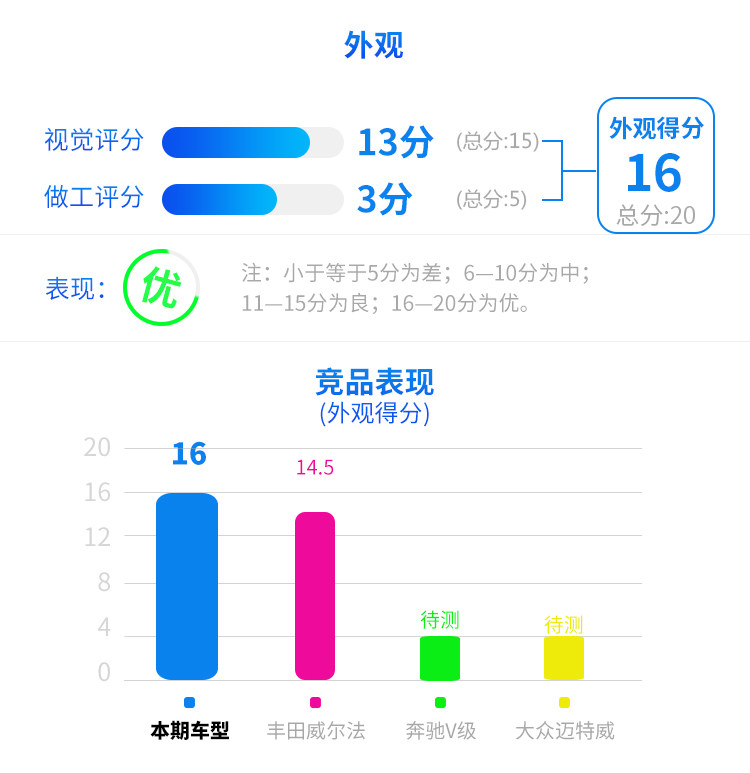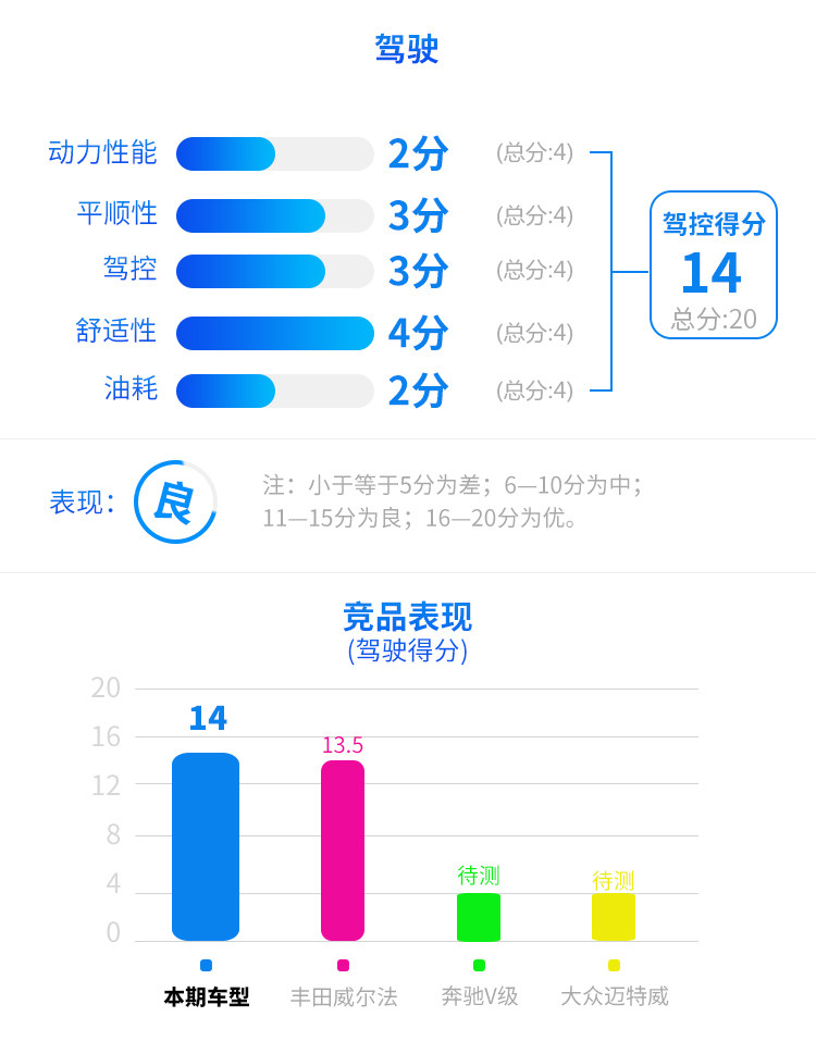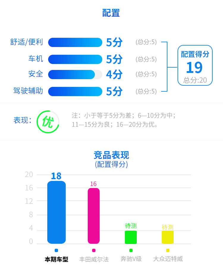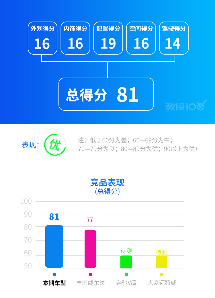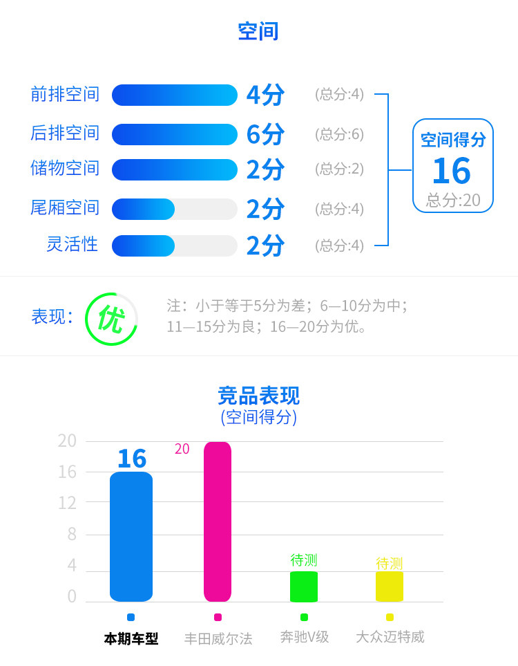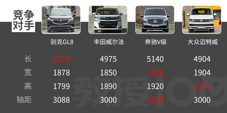 定位为中大型MPV,车身长度在竞品当中相当有优势,而竞品的高度和宽度更优。