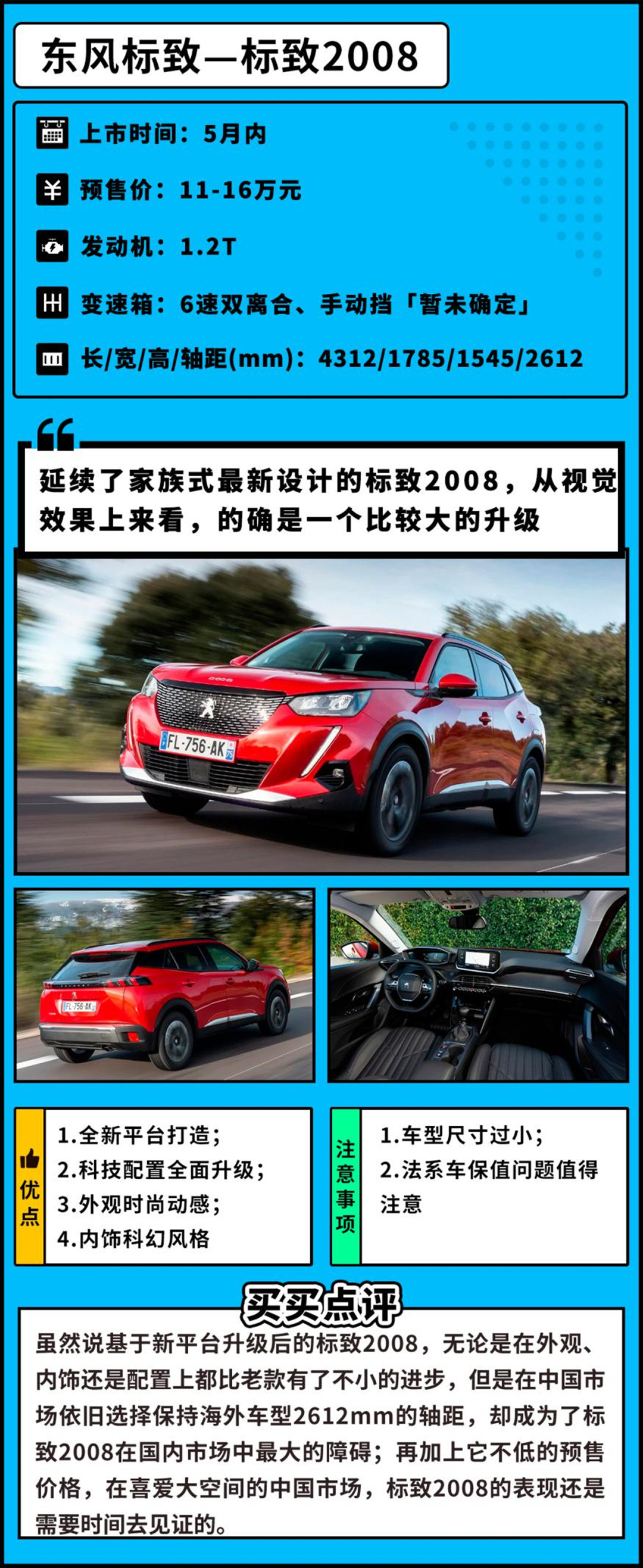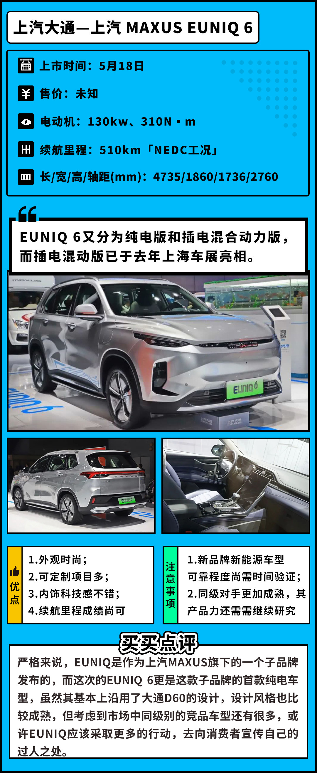 不难看出这个月上市的新车,相对比起4月份,种类更加多样化。在传统燃油车型和新能源车型中都有着亮眼的产品,由此可以感觉出汽车市场已经逐步开始走上正轨,在接下来的时间里还会有着更多的劲爆车型与我们见面。那么这些车型中,你最喜欢哪一款呢?想进一步了解的话欢迎在评论区和买买君交流哦。