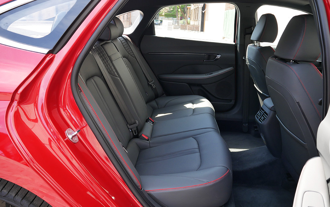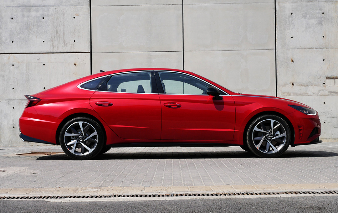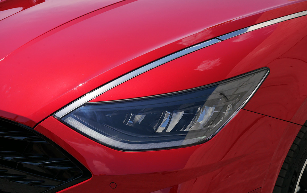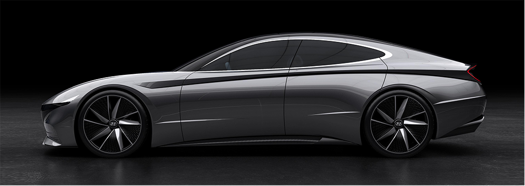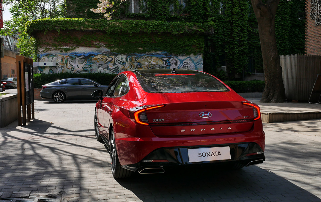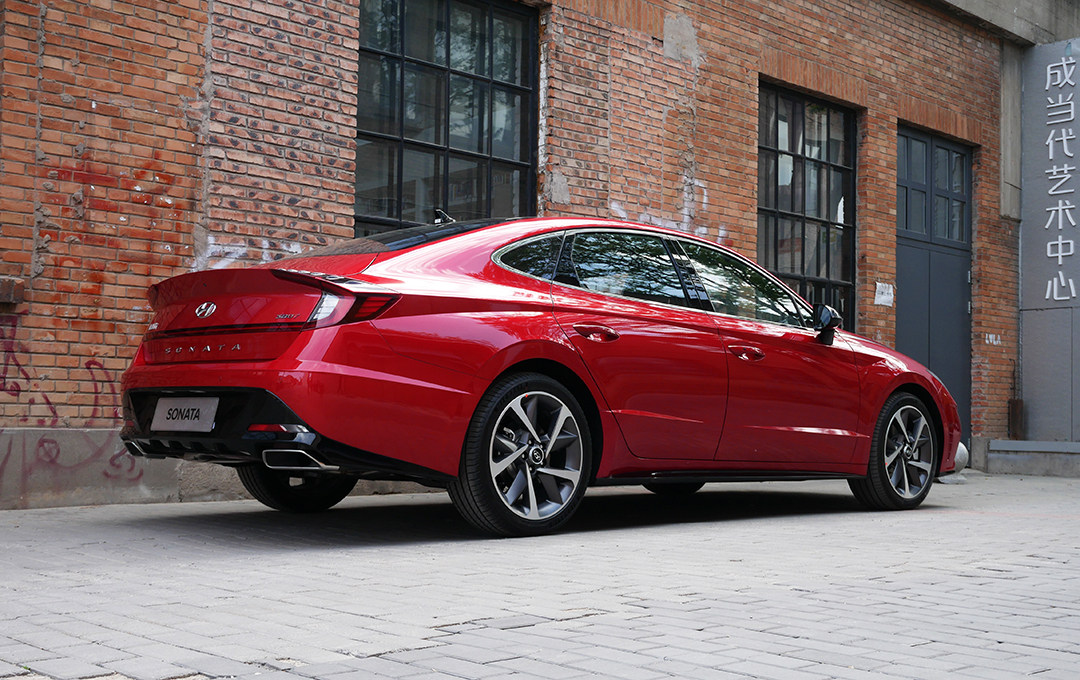 第十代索纳塔很好的将“Le Fil Rouge”概念车的设计手法占为己有,尤其是侧面极为流畅的体态最能营造出来,典型的短前后悬设计。溜背式造型设计,视觉优化和风阻系数降低一举两得。