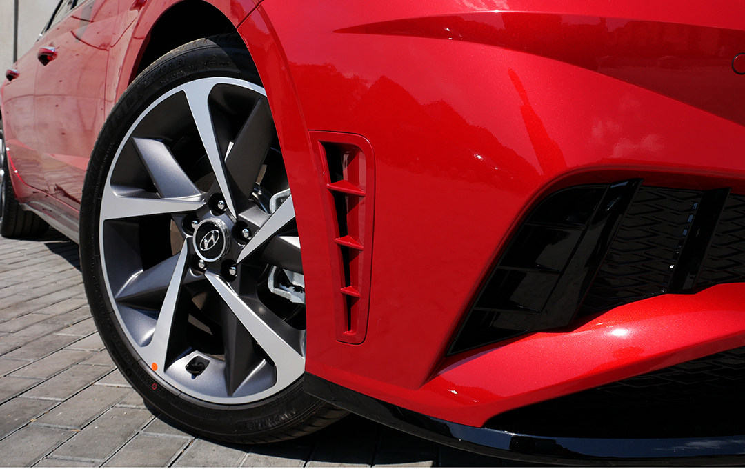 车漆方面,新车引入了现代汽车高端豪华品牌捷恩斯G70才会采用的烈焰红颜色,阳光之下更显惊艳。据官方介绍,该款车漆颜色是是现代汽车首次应用的3 coat red,在色彩饱和度、分量感、粒子感等方面有优异表现。要知道,像有些品牌车型的特别颜色还要另外加价呢!