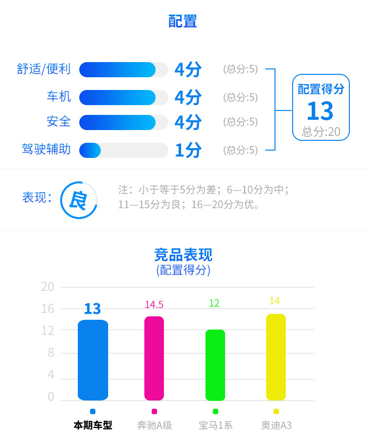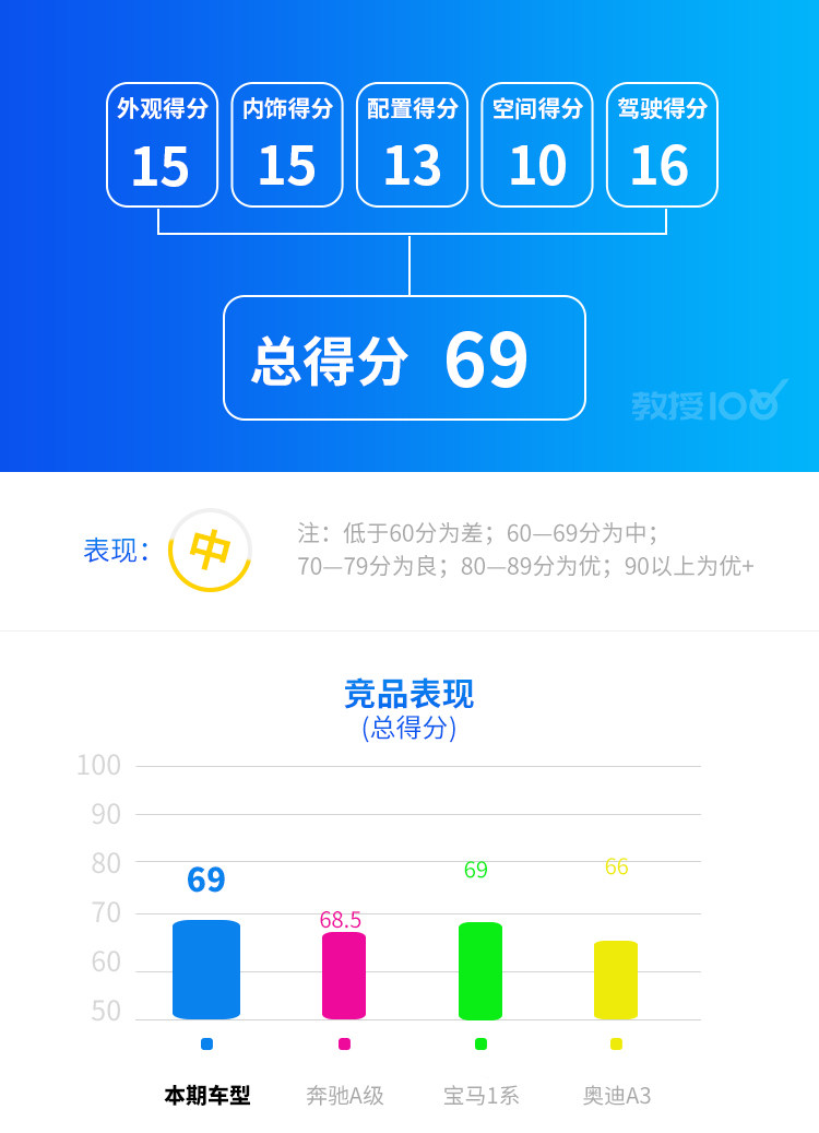 需要指出的是,我们教授100的评分体系对于驾驶辅助的评分是:自适应巡航、自动刹车、车道保持、车道偏离预警、自动泊车各占1分,CT4只配备了自动刹车,其他的都是预警功能,所以只能得1分。
