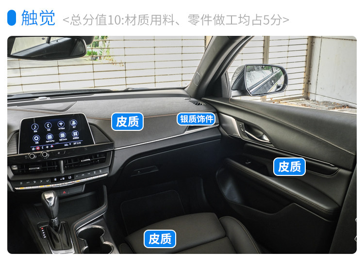 触觉方面依然是凯迪拉克典型的风格,大面积的皮革采用缝线修饰,还有厚实的座椅,摸起来很厚实但颗粒感较强,但总体来看还是比较满意的。