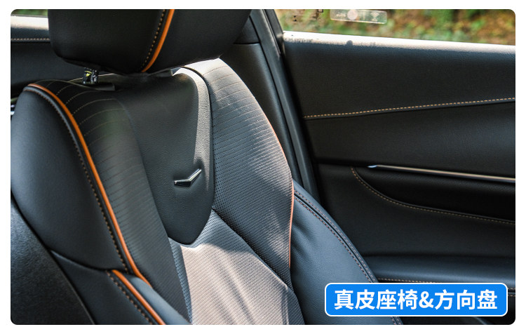 内饰的视觉亮点不多,但符合预期,整体布局简约舒展,以黑色为主色调欠缺一点档次感,但辅以银色的装饰件,加上饱满的皮革包裹+缝线修饰,整体看起来还算符合该级别的表现,比竞品有优势。