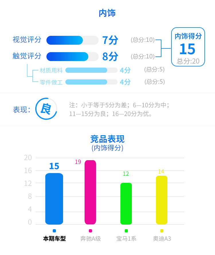 内饰的设计谈不上特别出彩,但不会让你失望;用料方面是比较令人满意的,用料很厚道,比起A3/1系等有一定的优势。