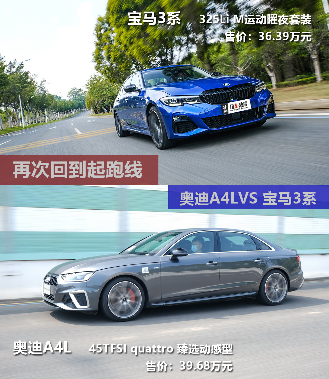 我们拿来对比的车型是2020款 奥迪A4L 45TFSI quattro 臻选动感型,其售价为39.68万元。另一款是宝马3系 2020款 325Li M运动曜夜套装,其售价为36.39万元。