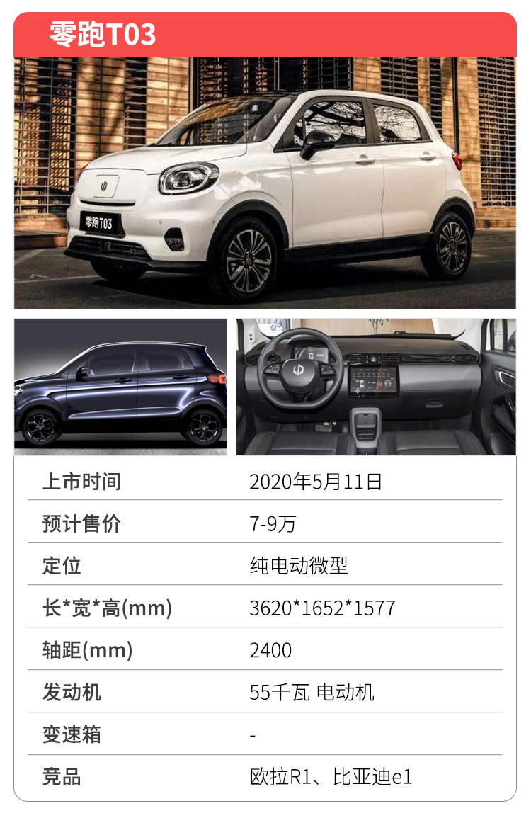 新车脱胎于零跑T平台,搭载55千瓦电动机,峰值扭矩155牛·米,NEDC续航根据配置不同可达300km、400km。其最大特点在于配备L2级别的驾驶辅助系统,但受限于软件,大概9月才能通过OTA升级正式开放使用,另外还有自动泊车、人脸识别等配置。若是能有一个合适的价格,相信零跑T03会成为品牌最热销车型。
