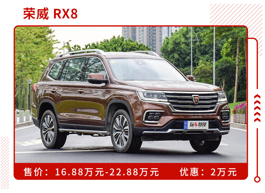 荣威RX8的车侧和车尾设计与RX5一脉相承,车辆长/宽/高:4923/1930/1840mm,轴距:2850mm,达到一辆中大型SUV应有的水准,车辆供5座和7座可选。