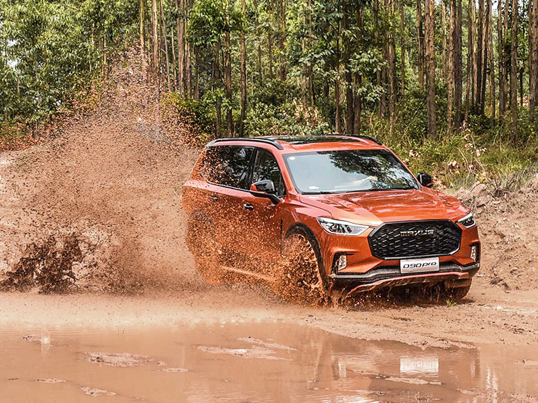 D90 Pro选用非承载式车身机构,并采用前双叉臂式独立悬挂+后五连杆整体桥式悬架的底盘方案,车辆接近角28°、离去角25°,最小离地间隙210mm,最大涉水深度800mm,说这些只想告诉你——越野,它不玩虚的。