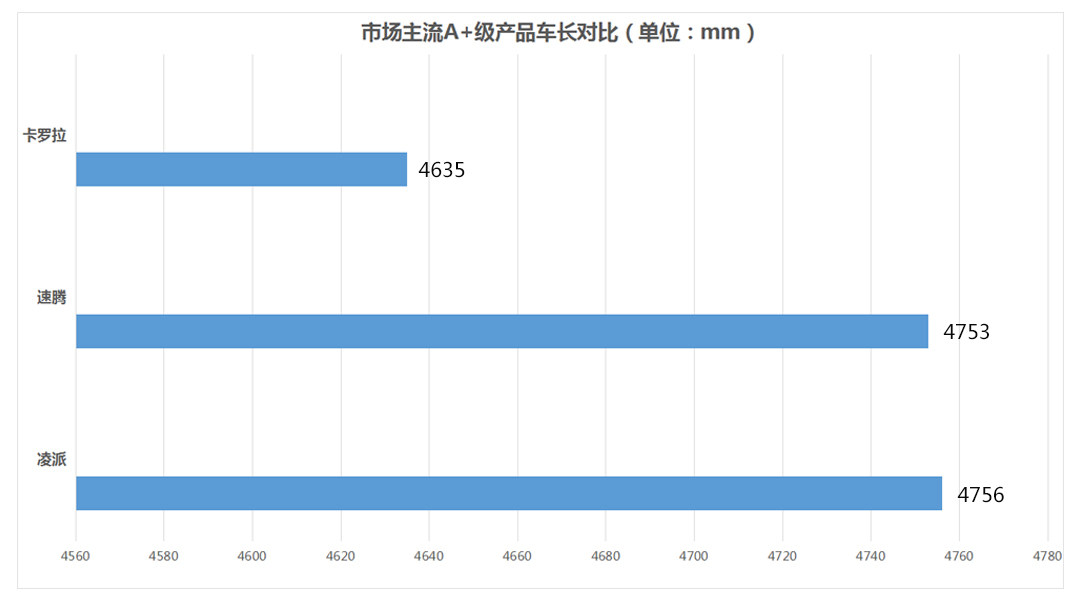 结合现款卡罗拉4635mm的车身长度以及2700mm的轴距来看,与同级别朗逸、轩逸一样,是标准的A级车尺寸。而目前市场上像凌派、速腾这类A+级轿车,轴距普遍达到2730mm甚至更高,而车身长度也在4700mm以上。