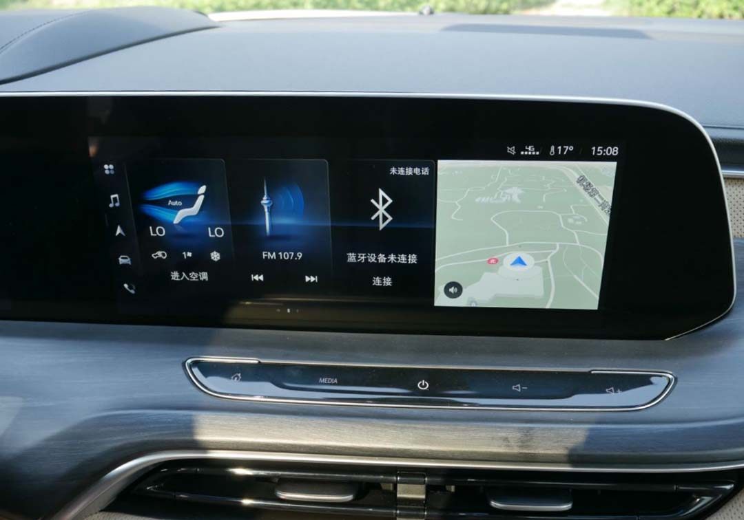内饰采用了全新的设计,虽然没有ES车型上的那套双联屏幕,但悬浮式的中控屏幕也不落伍,而细节的处理和用料上也比较讲究,并且采用了电子挡把,整体的豪华感和质感不错。