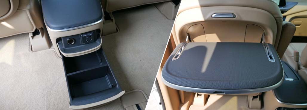 另外新车还引入多功能豪华翻折小桌板,带有手机放置槽、弹出式双杯托、侧面USB充电口等,为第二排乘员带来媲美头等舱的尊享体验。