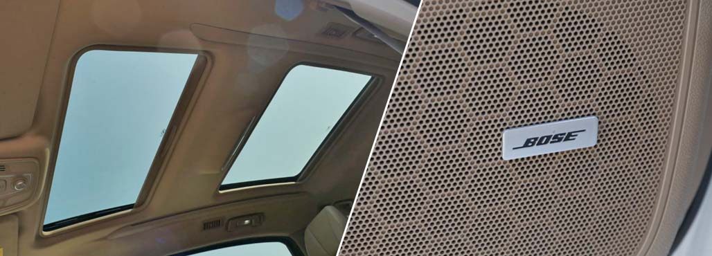 除此之外,新车还采用大尺寸双天窗设计,配备100%遮光率遮阳帘,提供Moon-White月光白氛围灯,搭载了Bose Centerpoint®高级环绕声音响系统,从视觉、听觉上提升座舱豪华感。