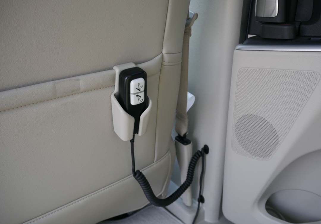 福祉座椅的线控开关安装在副驾驶座椅靠背处,通过简单的几个操作就可以实现座椅的前后、上下移动,以及靠背调节,使用还是比较方便。
