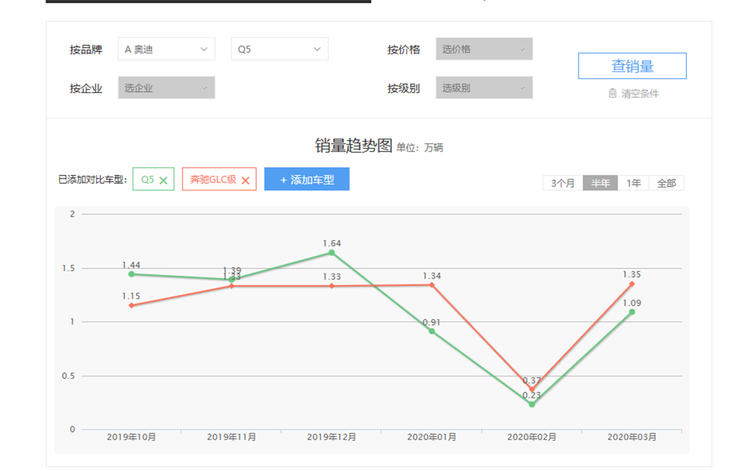 奥迪Q5L和奔驰GLC的销量对比