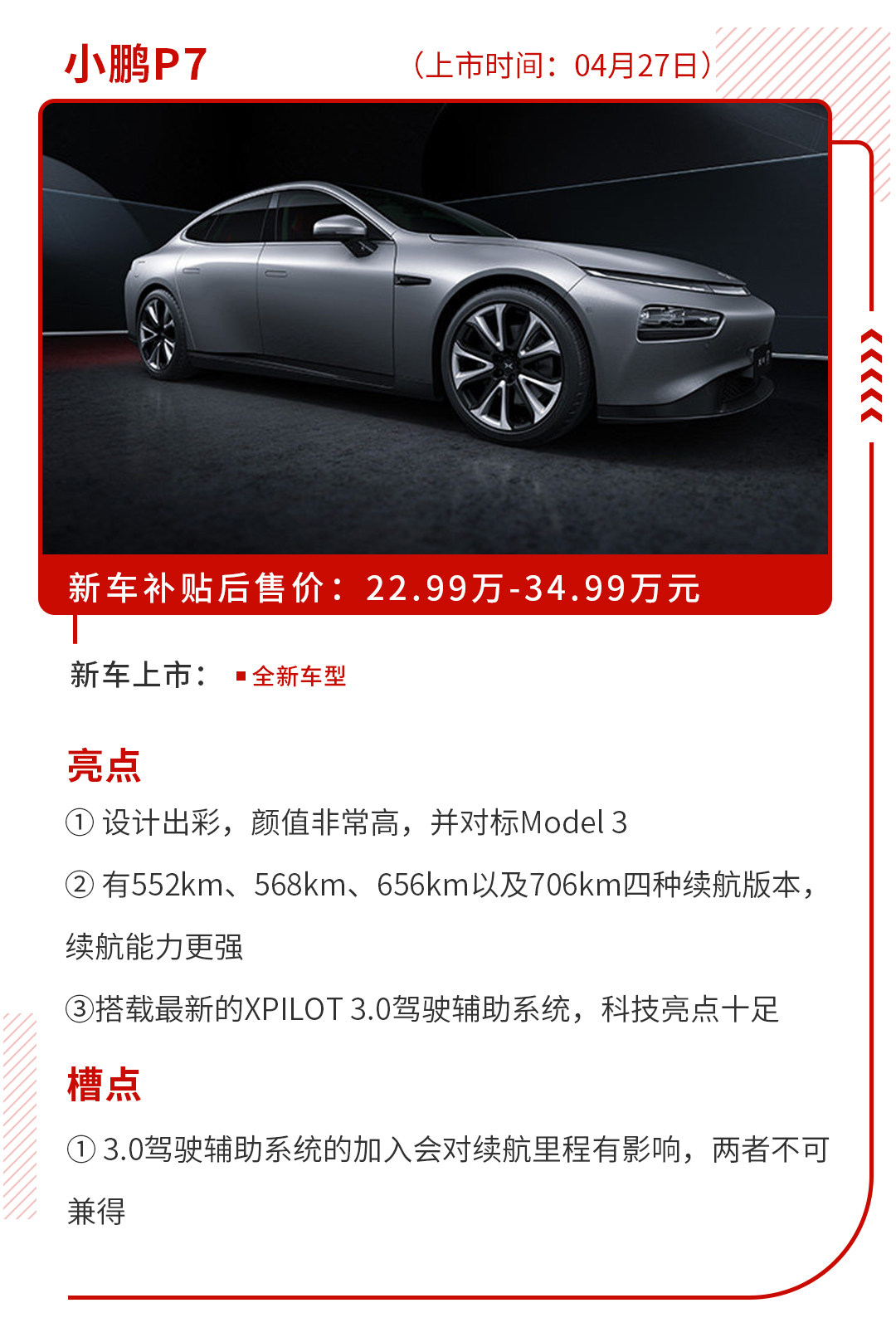 小鹏P7作为小鹏汽车的第二款车型,在设计、续航里程以及自动驾驶方面有着质的变化,。在设计方面,新车在4880/1896/1450mm大尺寸之下,运用了了“星际”设计语言,带来低趴时尚的视觉效果。而在大部分消费者,新车又有四种不同续航里程,满足消费者需求,并且每一种续航里程都处于主流水平,尤其是706km的续航里程。而为了提高科技标签,新车又有最新的XPILOT 3.0驾驶辅助系统加持。这样一来,新车并多的资本与根正苗红的将特斯拉Model 3进行同台较量。