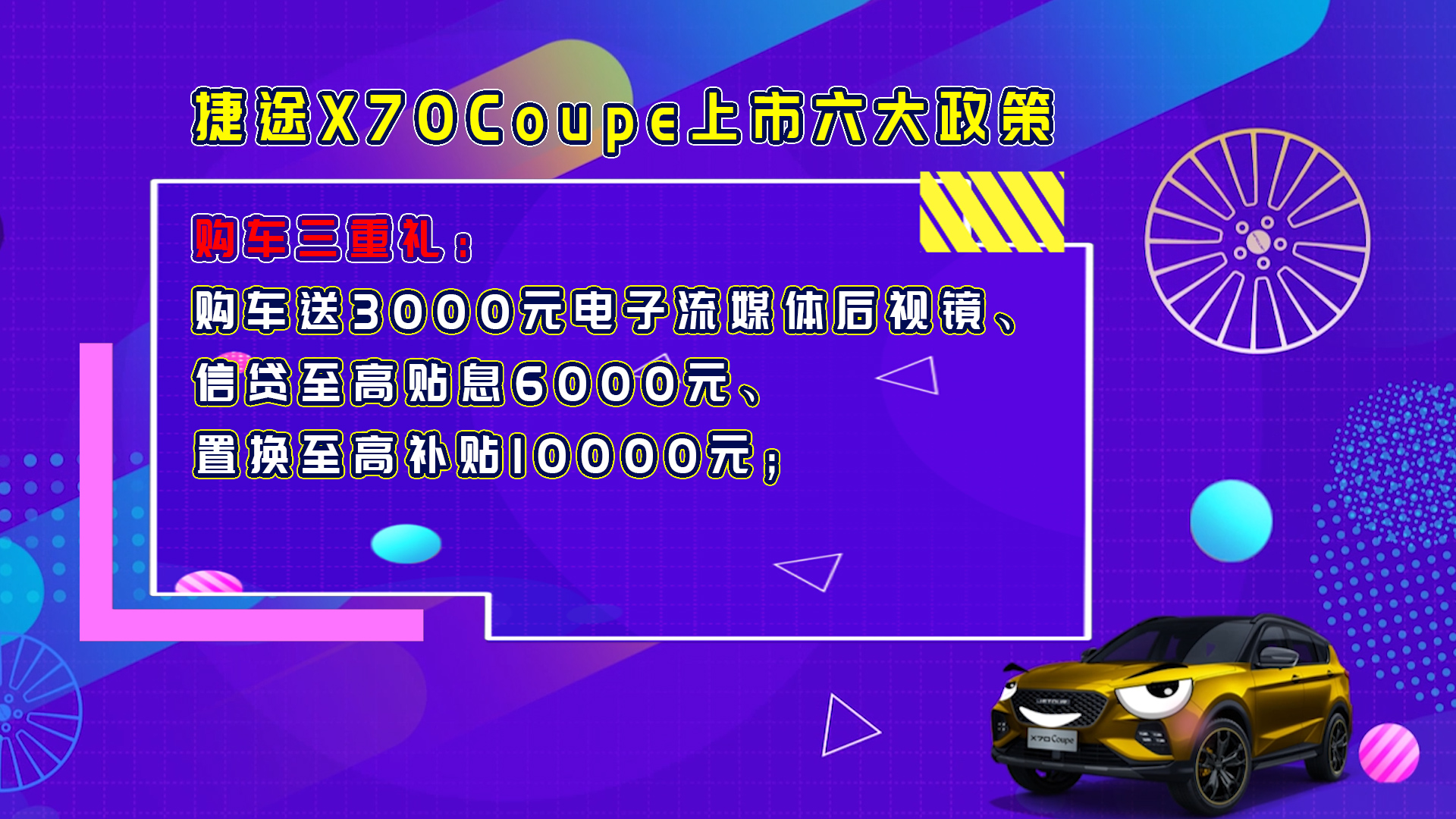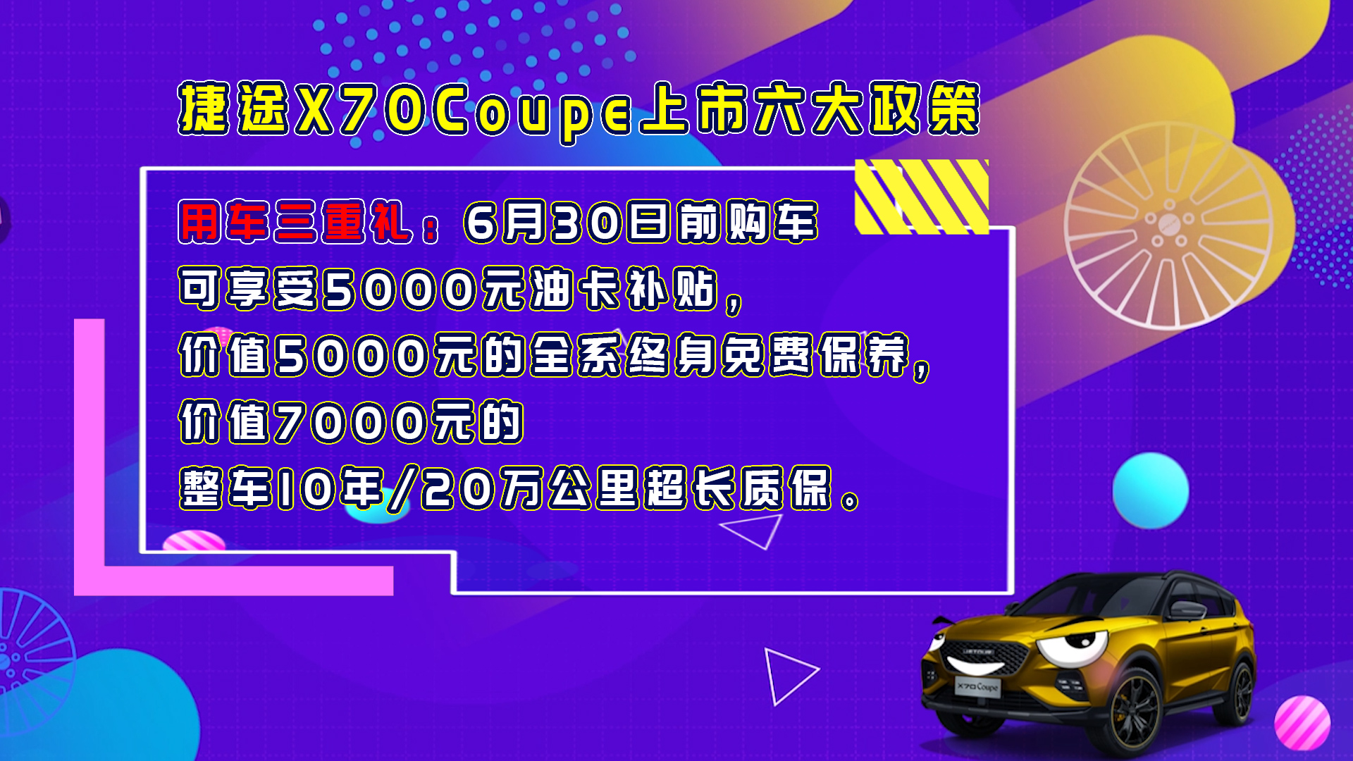 可以说捷途X70Coupe全面贴合现代年轻群体用车的需求。此外,个性化的定制,让你随心而变,与众不同。