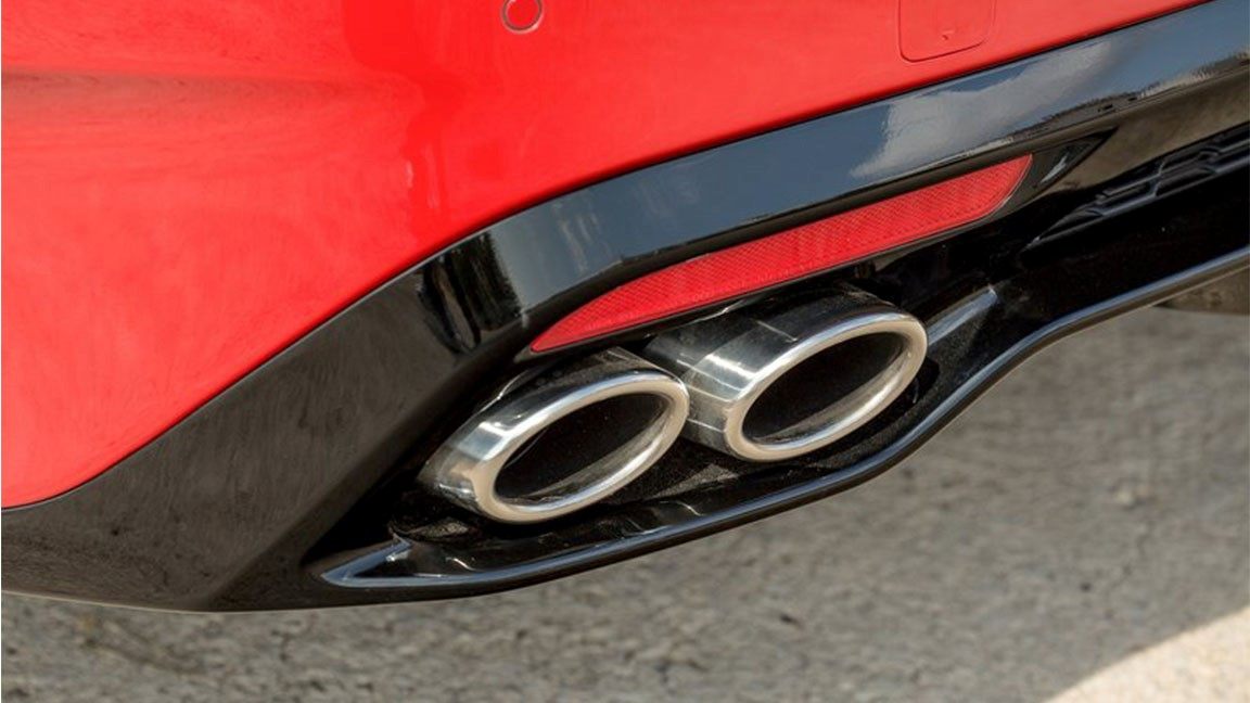 下方配有黑色扩散器,造型不夸张尺寸刚刚好,而双边共四出排气都是真的,因此斯汀格的车尾给人带来一种“性感又暴力” 的感觉。