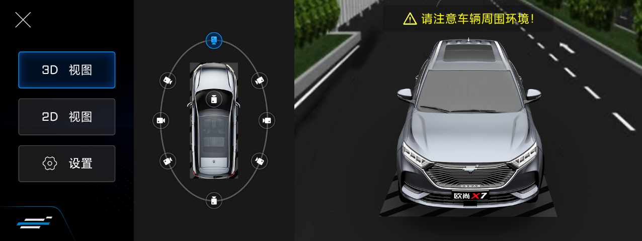 针对城市道路状况复杂,车辆易被剐蹭等消费者痛点,长安欧尚X7EV搭载长安欧尚X7同款全方位超高清“千里眼”远程视频系统,集成24小时全天候360°车况视频影像远程实时查看,可随意切换视频角度,实现爱车360°周边情况24小时实时掌控,同时兼具行车记录功能,防剐蹭、防碰瓷、留证据无死角,提升行车安全性。