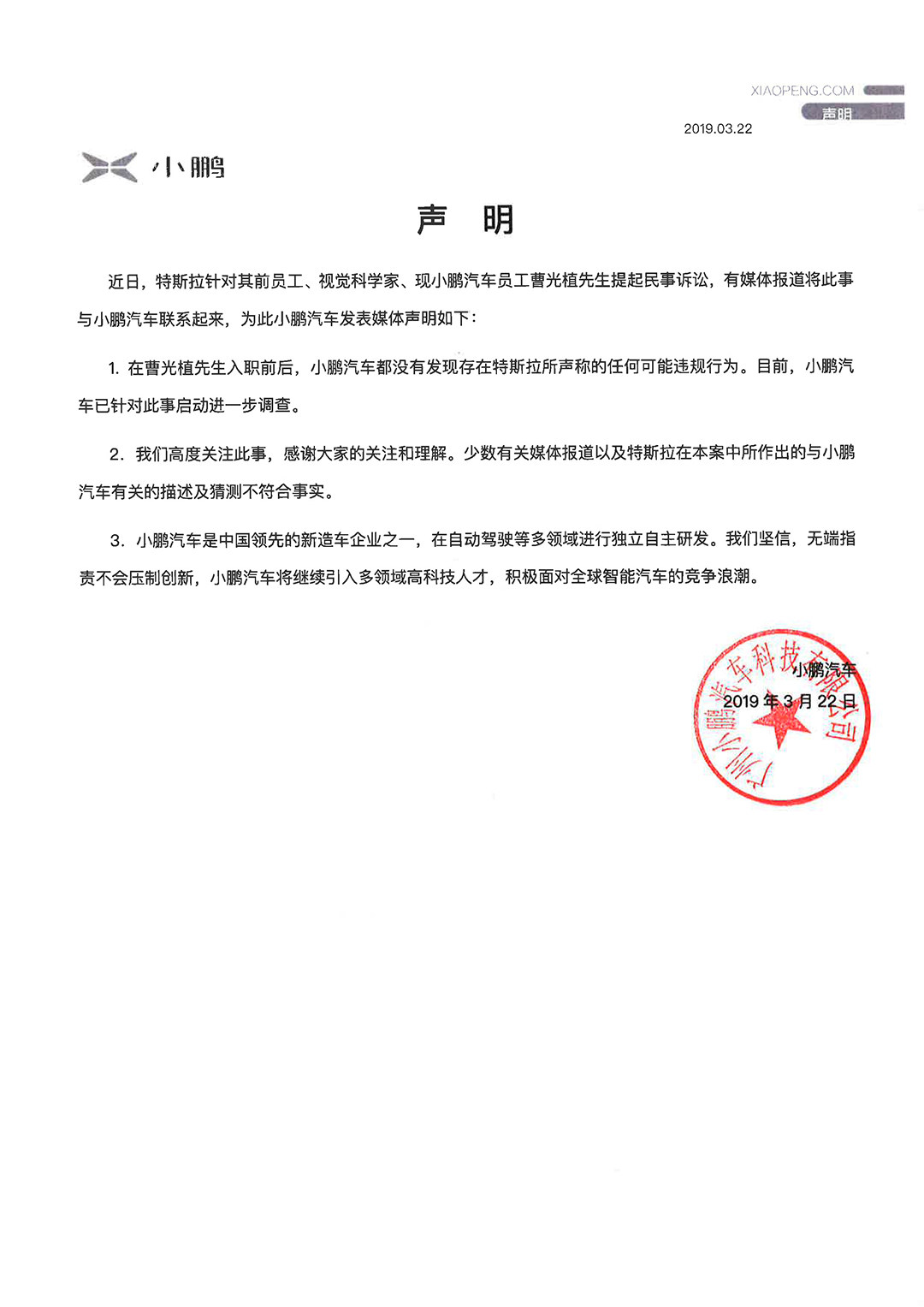 不过,小鹏汽车对此表示:过去一年里,小鹏汽车不隐瞒任何东西,一直努力协助该案调查,但至今没有任何证据显示,小鹏汽车有滥用商业机密或其他不当行为。在过去一年时间,特斯拉极力表现出来的一切尝试,实属霸凌行为,而非就事论事解决问题,令人遗憾。