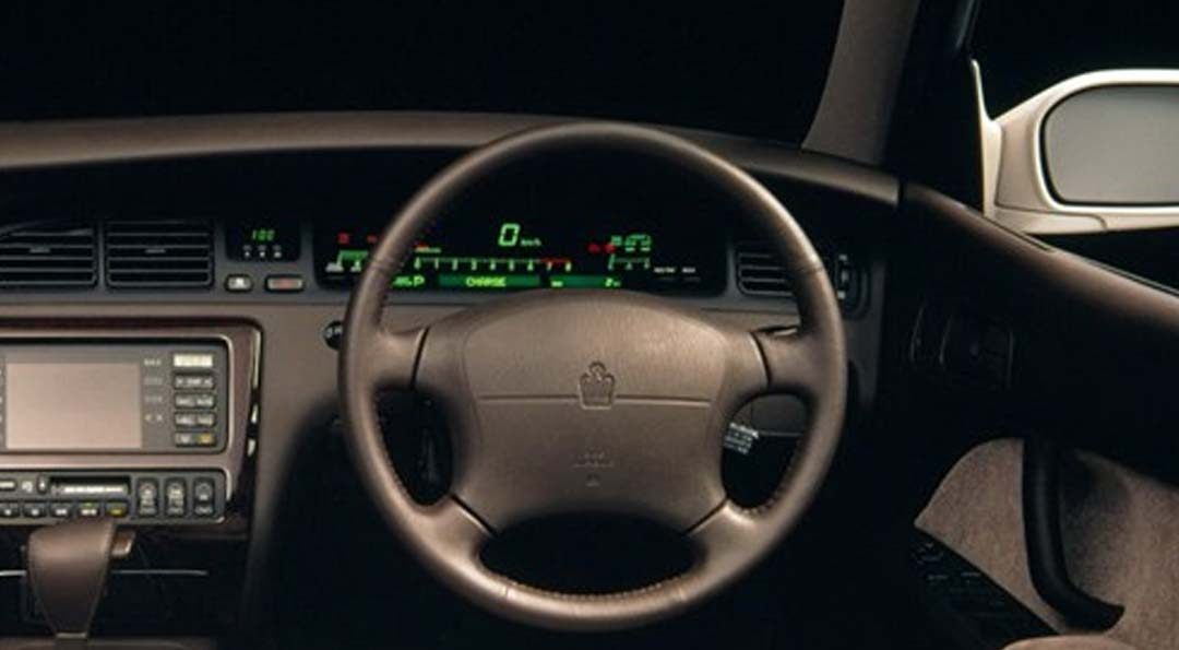所以在第八代皇冠身上,丰田可谓把当时最先进的科技配置都给用上了。搭载了世界首款附带CD信息的多媒体显示系统EMV,具备车载导航和功能显示等;另外还可以选配电子控制式牵引力控制系统TCS,要知道这个目前已经普及的配置,当时可是日本车上首次搭载。