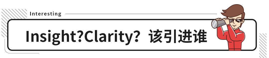 要与思域同级,甚至是高于思域,在本田现有的产品矩阵中,就有Clarity、 Insight。前者是本田在新能源发展的技术精华,可选纯电动、燃料电池、PHEV作为自己的动力来源,定位中型豪华轿车。
