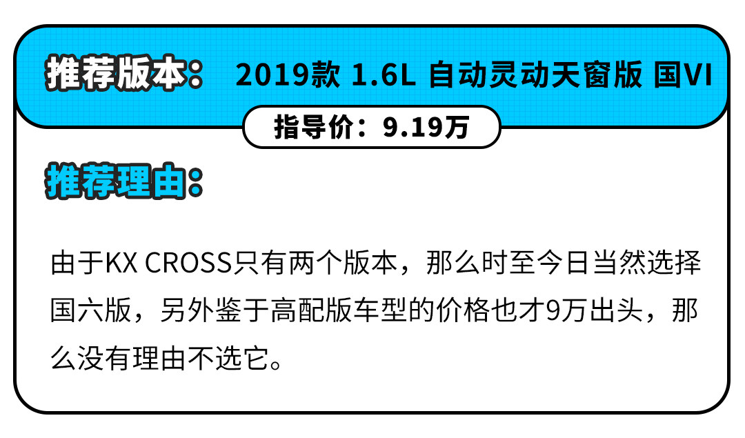 首先这种良心体现在动力上,KX CROSS动力分为两个版本:1.4L和1.6L两个版本。虽然在性能上都是属于买菜车的范围,但是它全系标配的是6挡手自一体变速箱,在一众入门合资车在低配版纷纷采用手动挡来拉低价格的大背景下,入门就是6AT还是非常良心的。