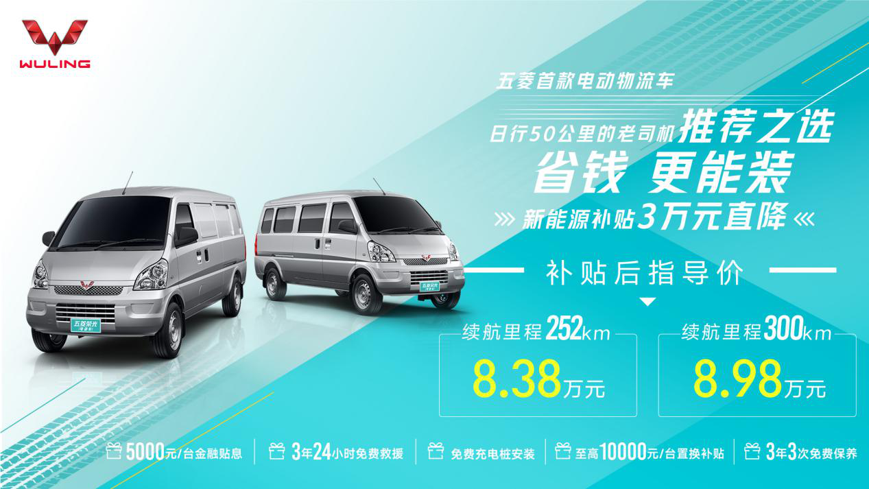 5月9日,五菱品牌首款电动物流车——五菱荣光电动车正式上市。新车提供252KM/300KM两种续航里程,其中续航252KM产品为封窗版,售价8.38万元;续航300KM产品提供封窗版和客车版两款车型,售价均为8.98万元。