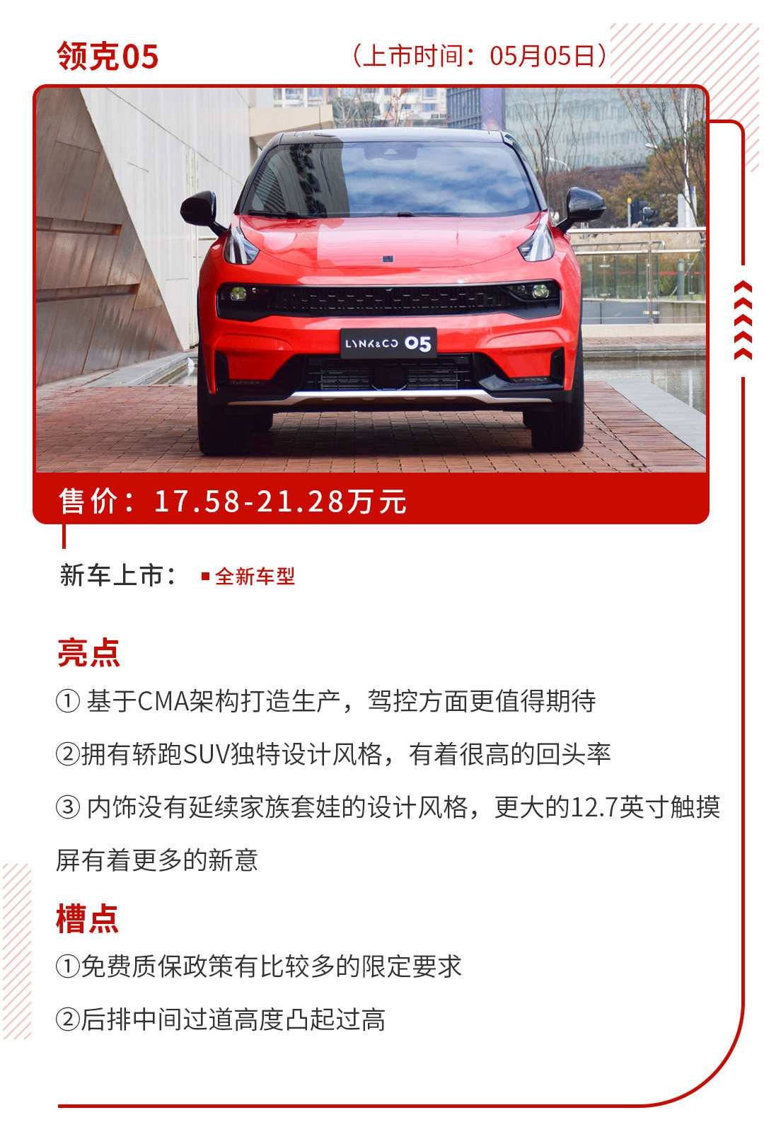 根据消费者不断提升的需求 ,上汽通用别克GL8 、奥迪Q7以及奔驰S级通过查漏补缺的方式提升竞争力,各自的关注点也有所不同。作为皮卡车型,锐琪6也新增了更有友好的自动版本。全新车型领克05的加入,轿跑SUV领域中又多一款不容小觑的高品质车型。
