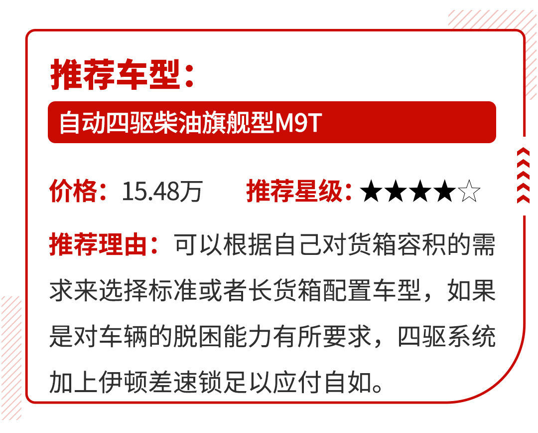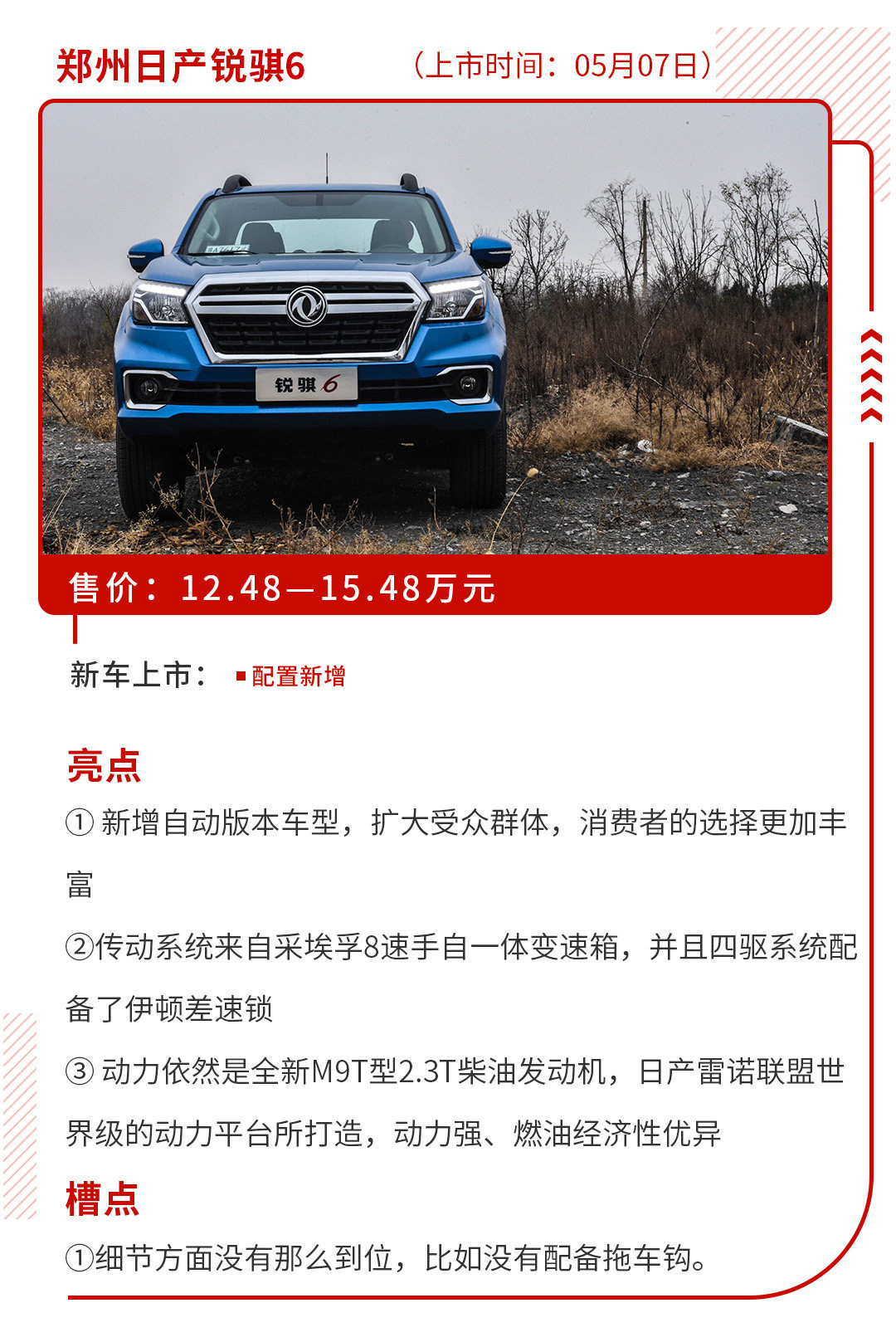 在产品力方面,新车在此前就已经换装了M9T型机2.3T柴油发动,此次为新增版本车型,新增自动挡提供更多的选择性。高配车型还有四驱系统可选,配合伊顿差速锁,可以面对更多复杂路面,让工具车的属性更加强大。而作为传统的皮卡车型,新款锐骐6的内外设计向舒适型乘用车过渡,尤其是内饰的设计及用料配色方面。在皮卡限行政策逐步得到缓解之下,相信一车多用的锐骐6能够迎来春天,
