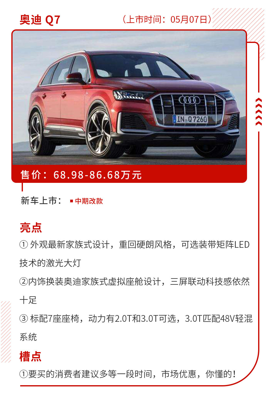 翻过4月的篇章,时光的转盘一下子拨到了五月。五月是振奋而又温馨的季节,五一国际劳动节让无数人振奋;而难得的母亲节又能让人感到温馨。在这个缤纷多彩的月份上,很多车企开始将重磅新车的上市提上日程,而这一周上市的新车只是一个开头而已。闲言少叙,马上来看看本周上市的新车吧!