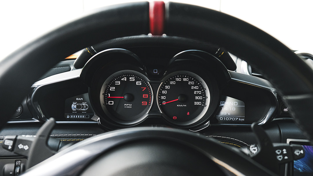 打开车门,最新一代911的现代复古风格内饰带来与别不同的视觉感受,经典的五连仪表盘由一个机械转速表和两块无边框液晶屏组成,配以小巧精致的电子档杆和按键,彷如置身一件硕大的古典风电子产品之内。