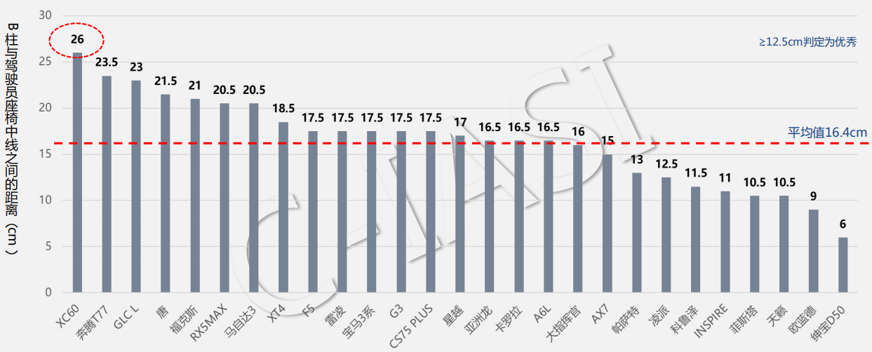 怎么证明车身侧面强度好不好?中保研的办法是测量B柱与坐垫中线的距离。只要B柱距离坐垫中线超过12.5厘米,就能拿到优秀评价,从测试结果看,大部分车可以满足这个标准。